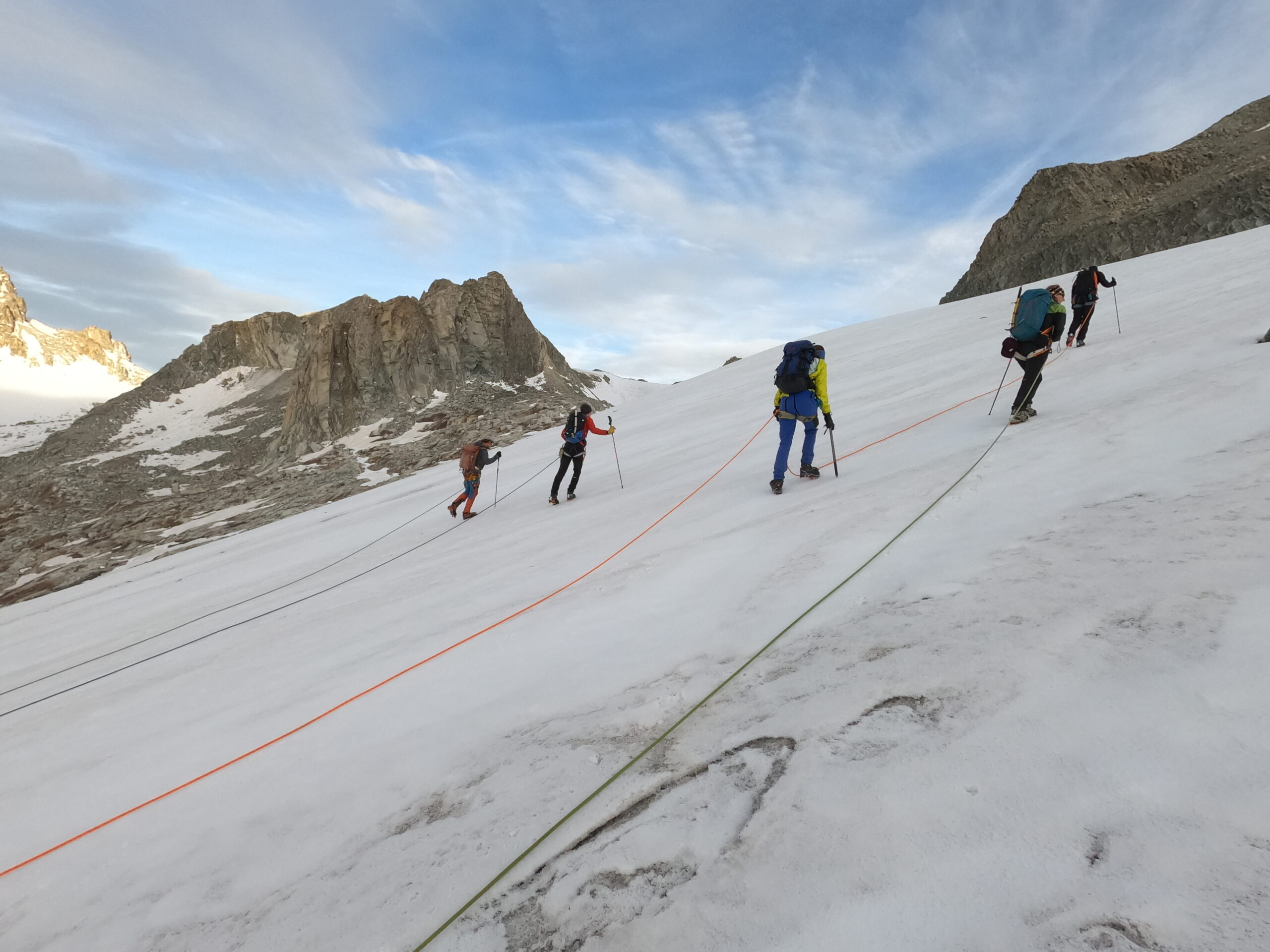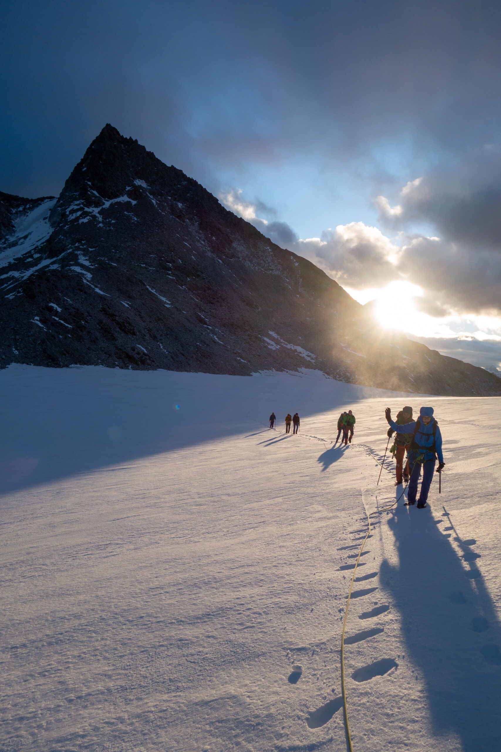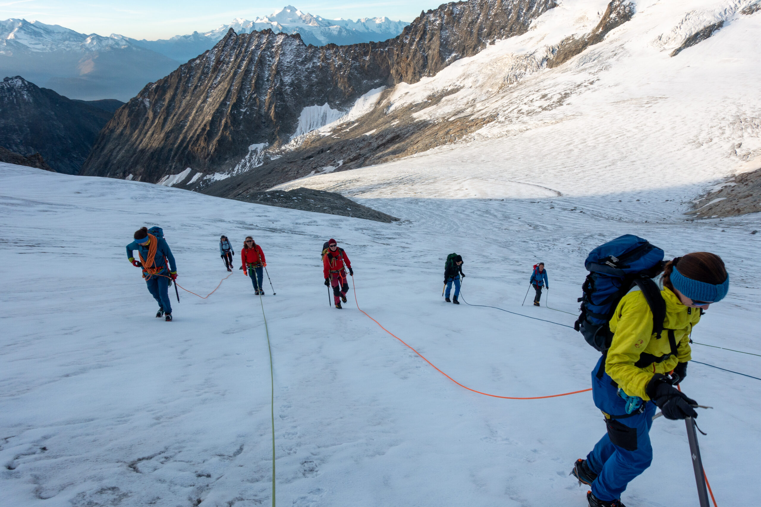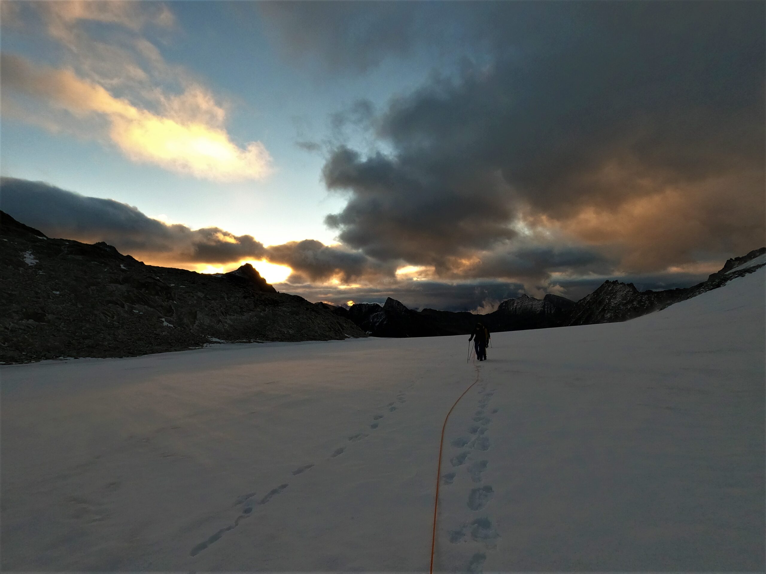 Bir Tour ufz Breitlauihorn am nächste Tag hetme de scho im Vorus chli gwüsst, ws mit «Kraksle» gmeint isch – mir si nachdr Gletscherüberquerig (wo schön, aber gar nid so spannend wi erwartet isch gsi) no feiechli klätteret (odr äbe krakslet) und hei dobe aacho ziemlech lang chönne di superschöni Ussicht gniesse. Am Morge denn heimr zwar nid mit veriisete Steine z Kämpfe gha, drfür mit glattgschlieffene Platte, wo teu wines Gemschi si ufegloffe und teu äbe weniger…