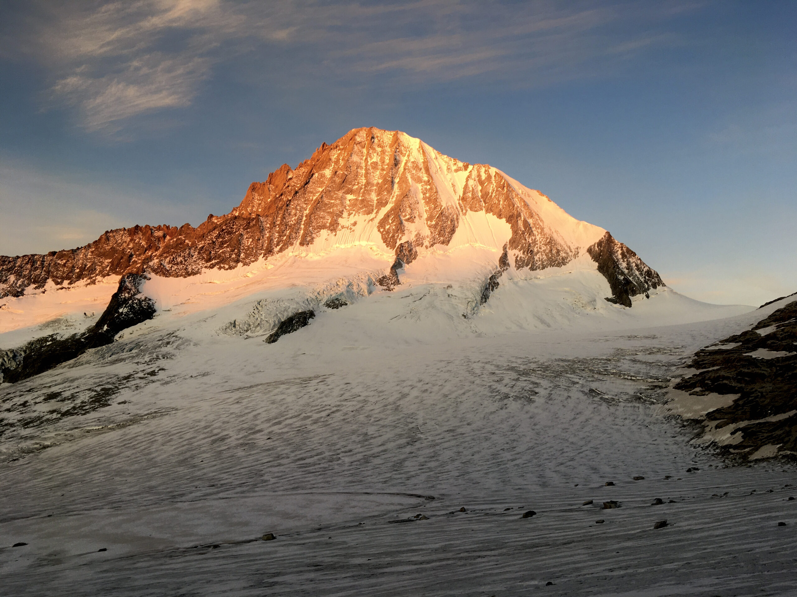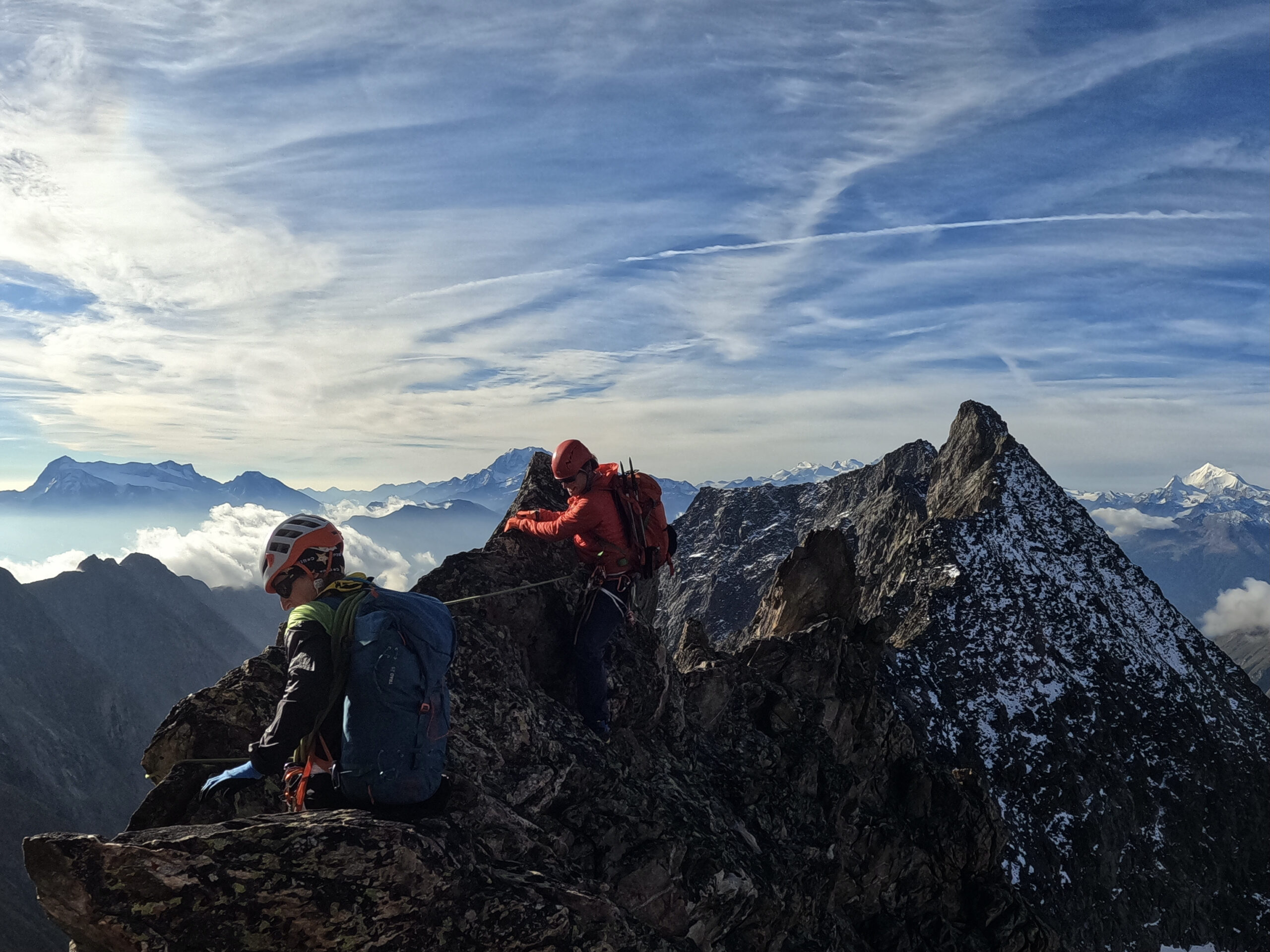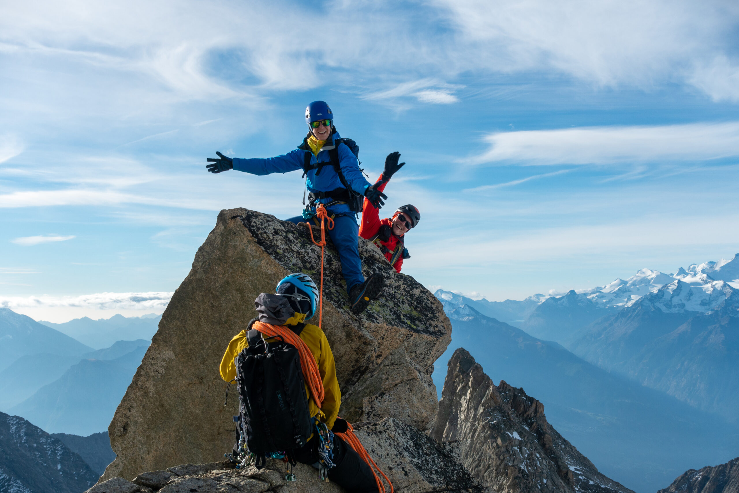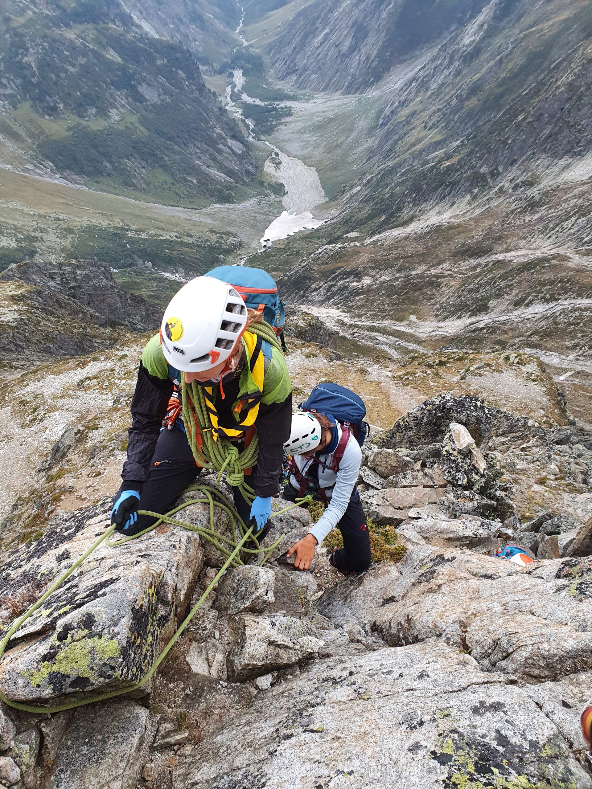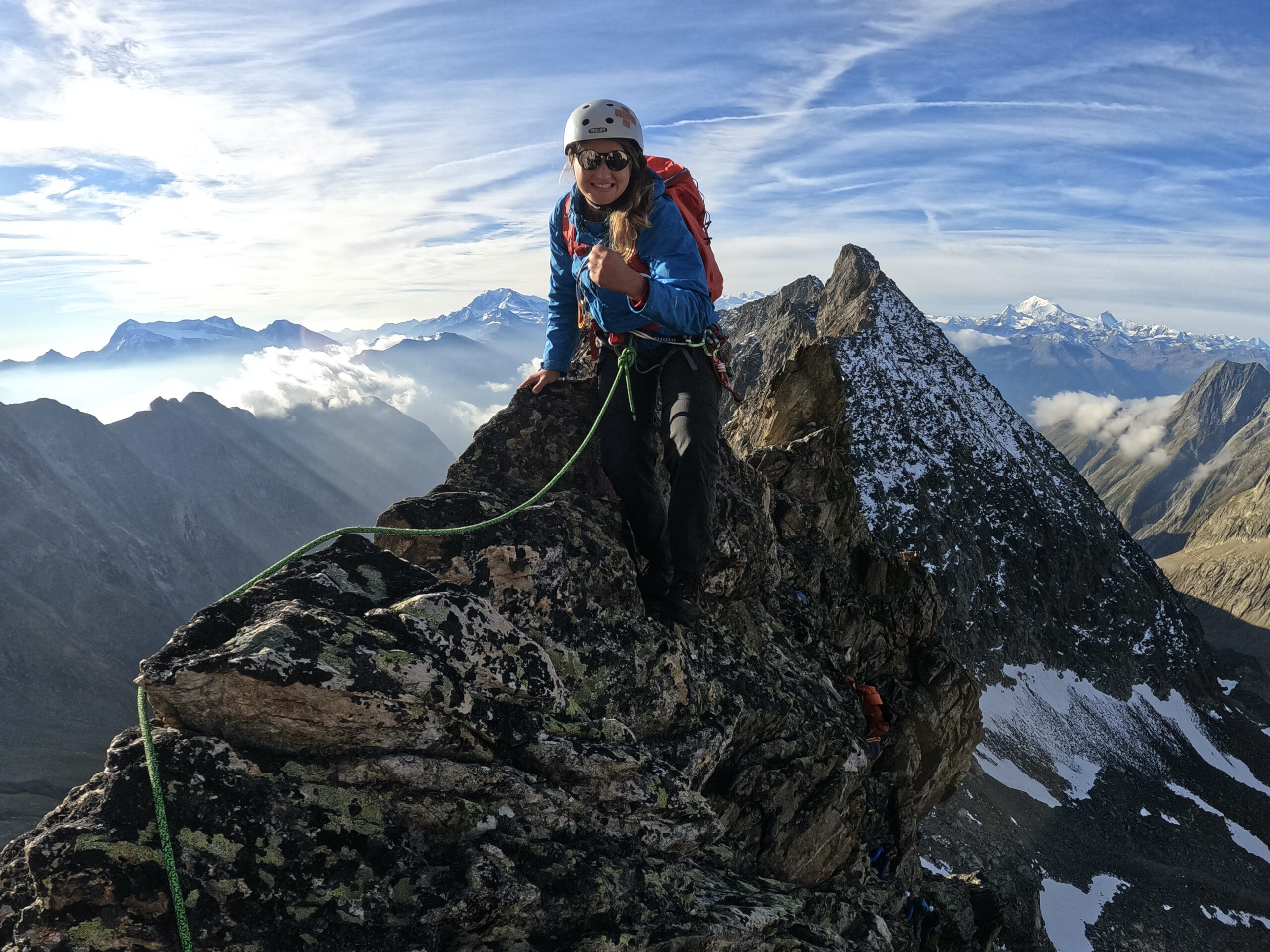 Bir Tour ufz Breitlauihorn am nächste Tag hetme de scho im Vorus chli gwüsst, ws mit «Kraksle» gmeint isch – mir si nachdr Gletscherüberquerig (wo schön, aber gar nid so spannend wi erwartet isch gsi) no feiechli klätteret (odr äbe krakslet) und hei dobe aacho ziemlech lang chönne di superschöni Ussicht gniesse. Am Morge denn heimr zwar nid mit veriisete Steine z Kämpfe gha, drfür mit glattgschlieffene Platte, wo teu wines Gemschi si ufegloffe und teu äbe weniger…
