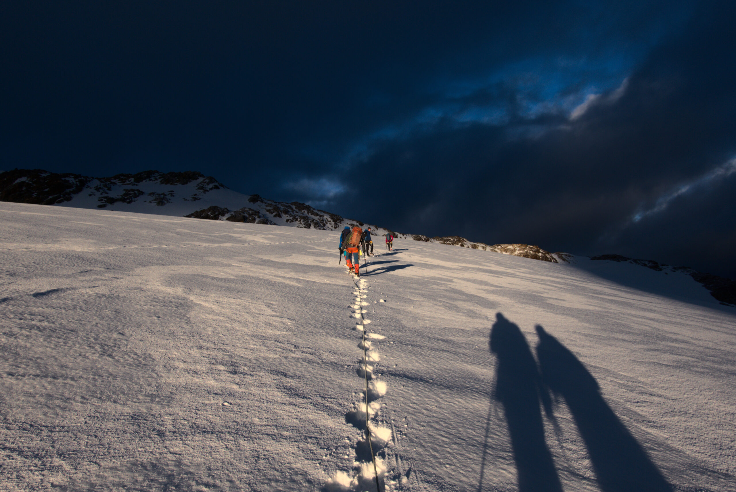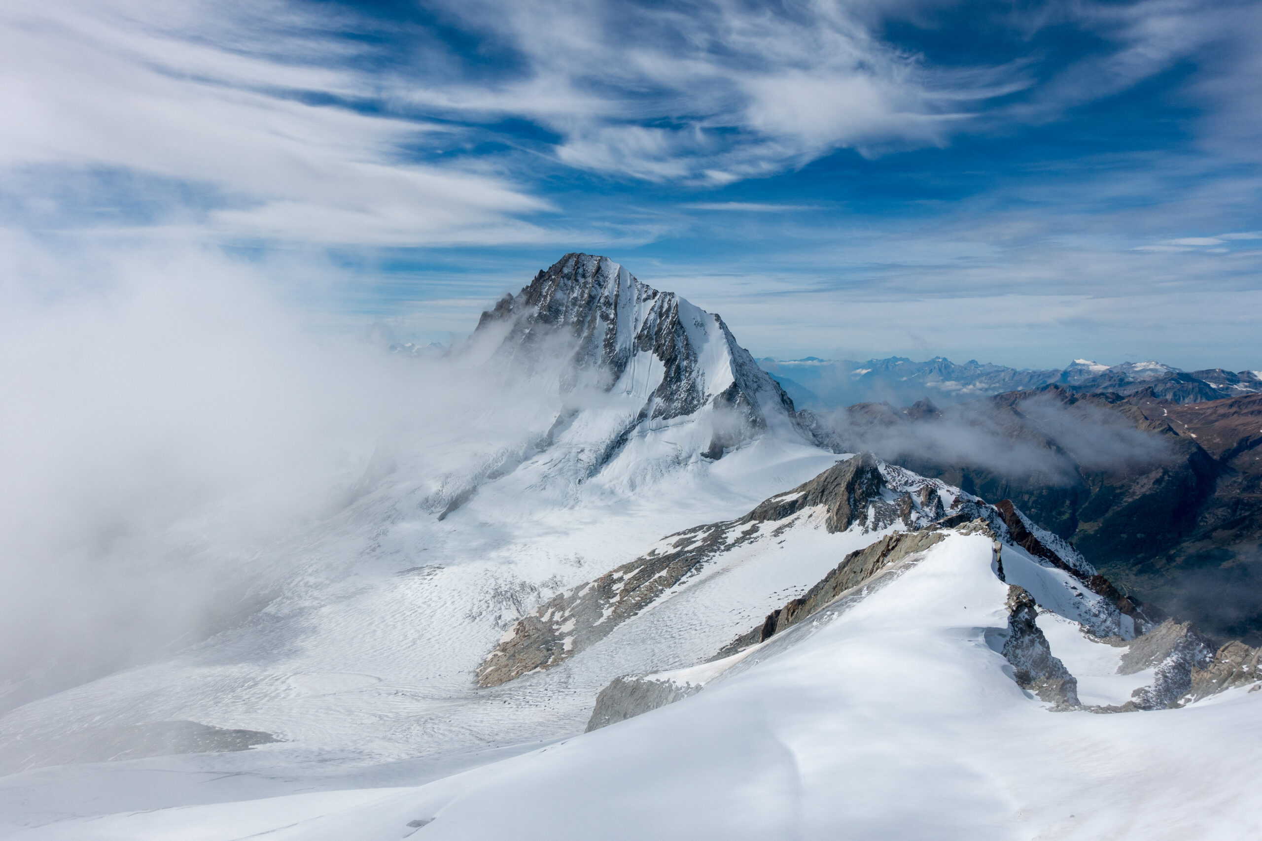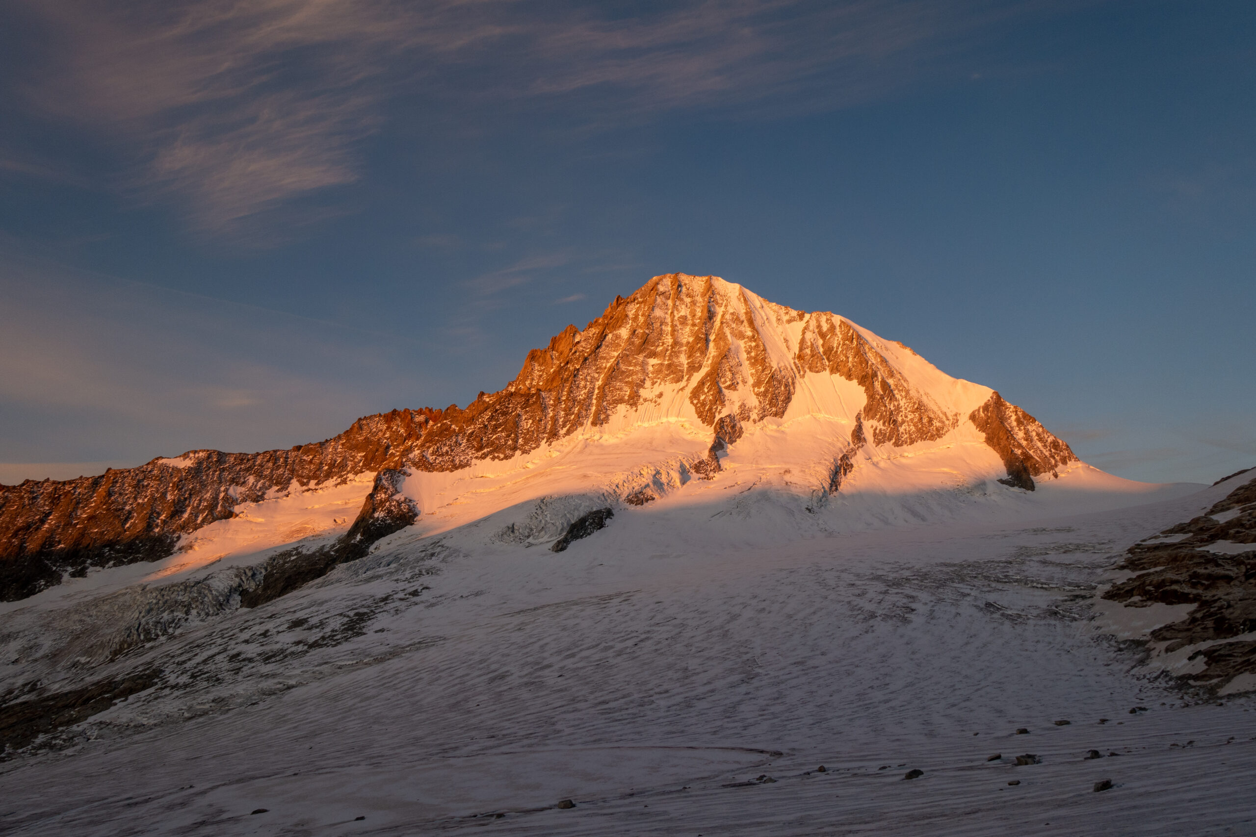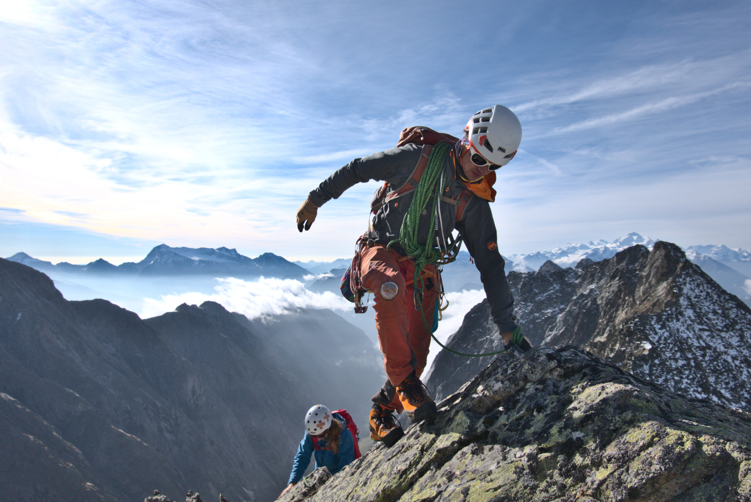 Bir Tour ufz Breitlauihorn am nächste Tag hetme de scho im Vorus chli gwüsst, ws mit «Kraksle» gmeint isch – mir si nachdr Gletscherüberquerig (wo schön, aber gar nid so spannend wi erwartet isch gsi) no feiechli klätteret (odr äbe krakslet) und hei dobe aacho ziemlech lang chönne di superschöni Ussicht gniesse. Am Morge denn heimr zwar nid mit veriisete Steine z Kämpfe gha, drfür mit glattgschlieffene Platte, wo teu wines Gemschi si ufegloffe und teu äbe weniger…