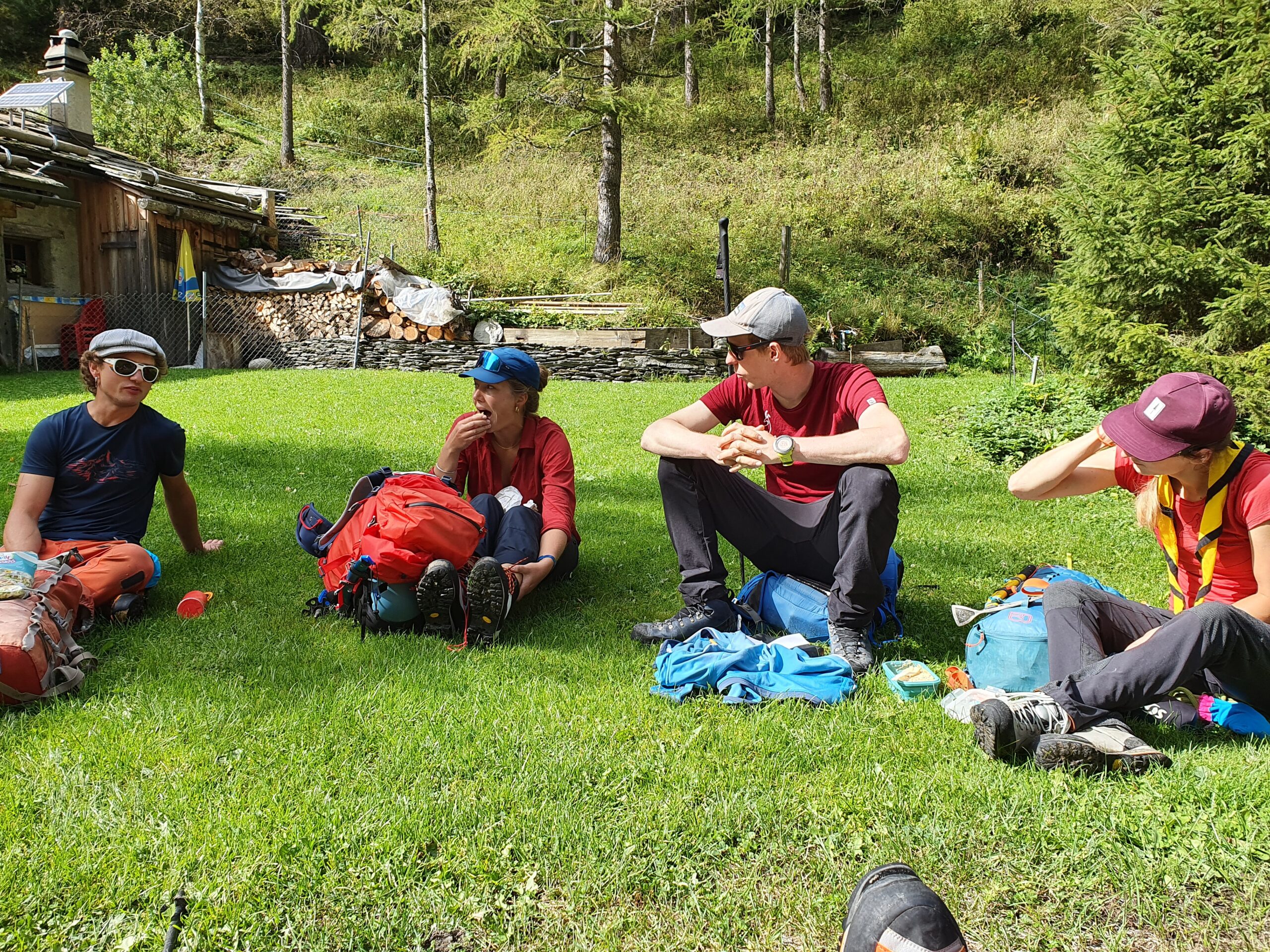 Mir si de a däm Tag zum Stockhornbiwak ufegloffe. Üse grösste Motivator isch nid dr Bärgfüehrer Jonas gsi – obwou dä si Job (abgseh vom vergässene Gstäutli) super het gmacht – nei es si di viele «Heiti» (Heidelbeeren) gsi, wo überau am Wägrand si gwachse. So heimr mit üsne Müler und Häng scho mitem Motto «Suberkeit wird überbewärtet» chönne i di Wuche starte. Im Stockhornbiwak heimernis de nöcher kenneglehrt – sozial und rüümlech. Nume so viu: Zum Glück hei ono es paari ghoufe choche, wöu nume so hets einigermasse gnue Sitzglägeheite und Platz fr di angere gäh…