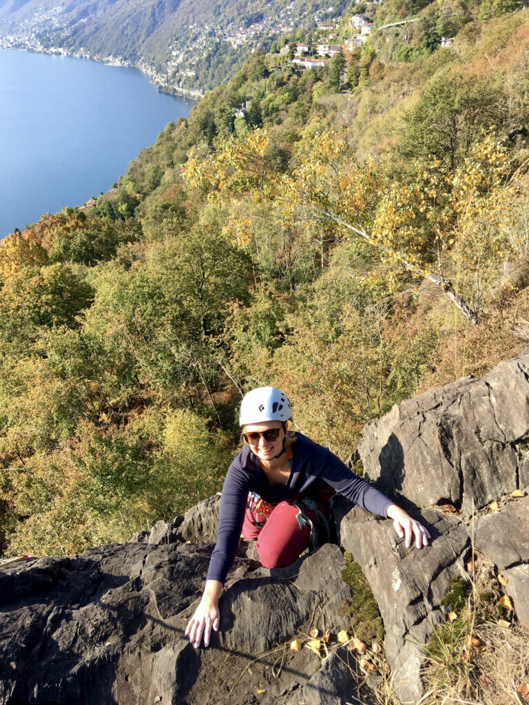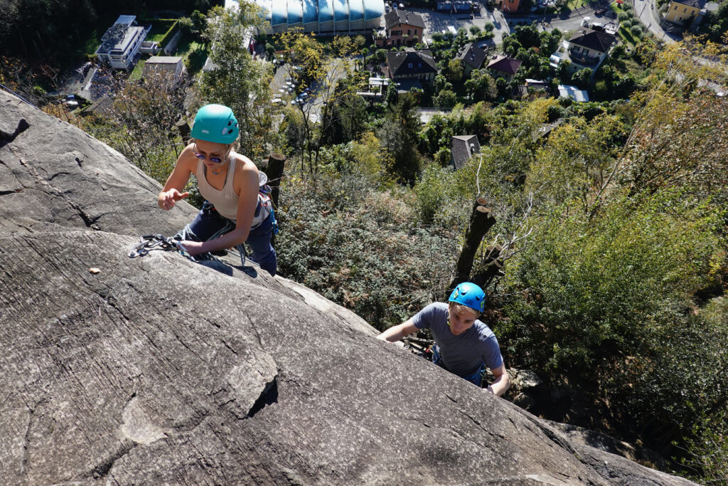 Der Samstag stand nach einem ausgiebigen Brunch ganz im Namen des Monte Garzo. In zweier oder dreier Seilschaften nahmen wir jeweils eine der Mehrseillängen an diesem Felsen in Angriff. Einige mochten die plattige Kletterei mehr, andere weniger. Wir kamen aber alle auf dem „Gipfel“ an und konnten von oben die Aussicht bis auf den Lago Maggiore geniessen. Den Nachmittag liessen wir im gemütlichen Grotto America ausklingen.