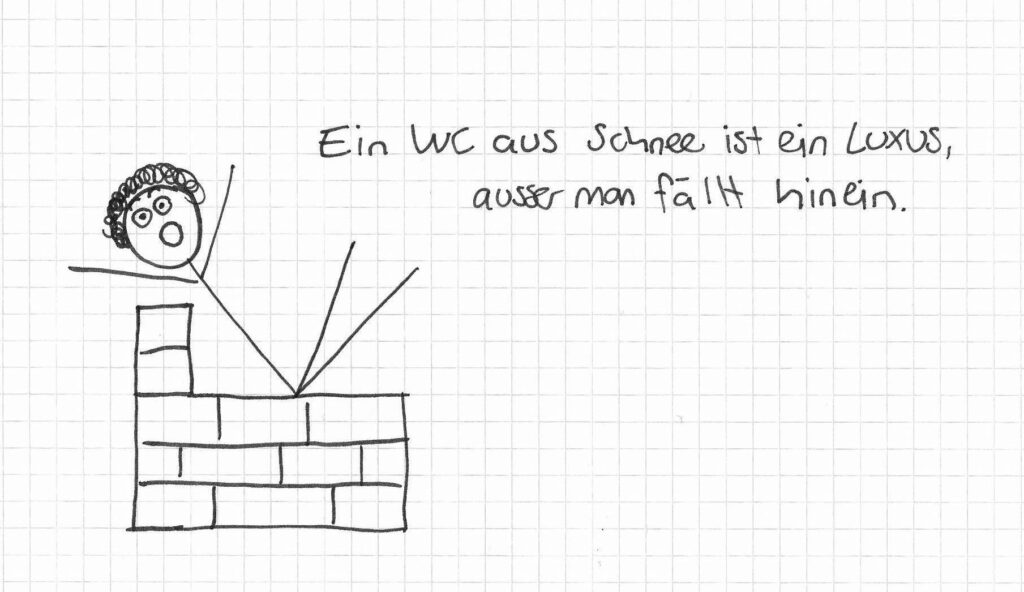 Wer herausfindet, welche von diesen Skizzen Fun Facts und welche (nur 1) Fun Fiktion ist, darf im Sommer die aus Versehen eingebuddelte Schneesäge bergen.