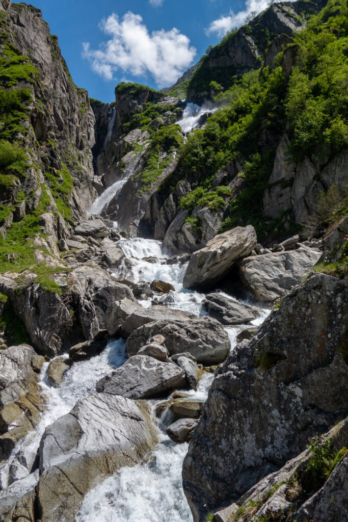 Beim Hüttenzustieg bewunderten wir unter der strahlenden bündner Junisonne, tosende Wasserfälle,